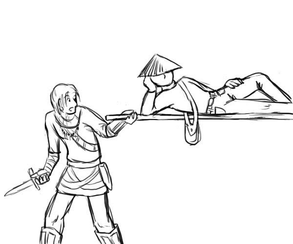 "YOU HEARD ME," YOU SAY GRUFFLY. "IT'S CHELLING OR ME. MAKE YOUR CHOICE." THE BEASTMASTER HURLS YOUR NAGANATA WITH YOU STILL HANGING ONTO IT AND IT EMBEDS ITSELF INTO A WALL. "WHO IS YOUR LORD, ANYWAYS?" HE SAYS. "WHO IS YOUR MASTER? I FIND IT HARD TO BELIEVE ANY HIGH-RANKING IALA WOULD LET YOU ACT SO BRAZENLY. TRYING TO BLACKMAIL A VICHEY. HUH. WHEN I HAVE BEEN NOTHING BUT POLITE AND PATIENT TO YOU, EVEN THOUGH YOU DO NOT BELONG TO ME OR MY LORD." "BUT THIS HARPY, SHE NEEDS TO BE DISCIPLINED. DON'T WORRY, I WON'T KILL HER."