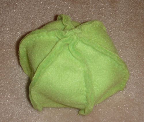 If you are to flip the body inside out, this is what it should look like. Ta da! Now this is beginning to resemble a metroid. There should be no pins visible on the outside and all the 'good' sides of the cloth should be showing.