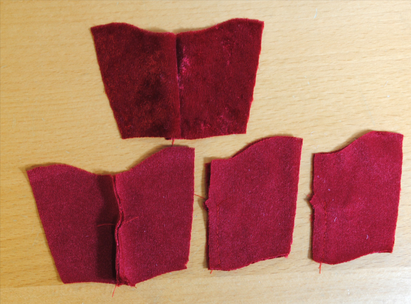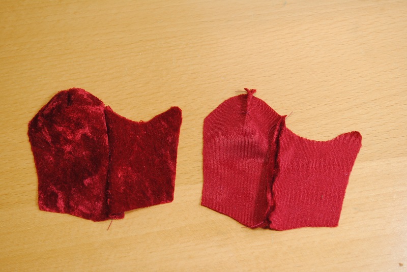 Sew the Lower Leg pieces together just up to the tab. Make sure you don't accidentally sew the wrong side of the pieces.